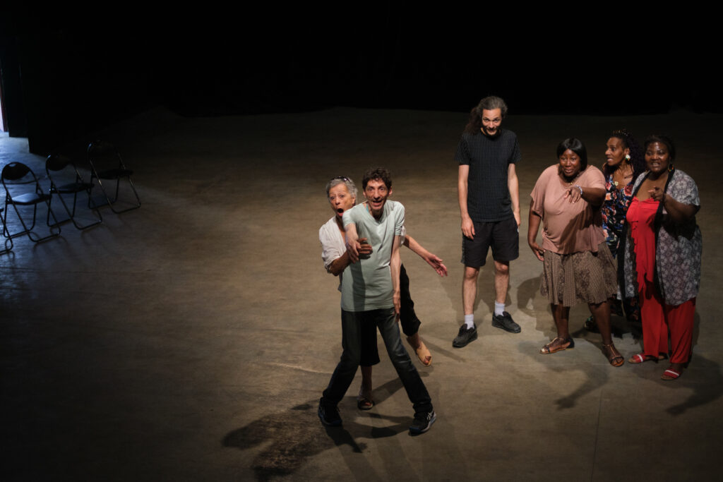 Une représentation publique le 16 juin à la cité de refuge (Centre d’Hébergement et de Réinsertion Sociale de l’Armée du Salut à Paris 13e) sur les thématiques suivantes : la préfecture, l’accès au soin, les logements d’urgence, le racisme et le handicap.
