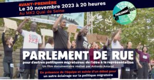 Nous avons créé ce spectacle pour la rue avec des militant.es en juillet 2023. Avec la loi Darmanin, il est temps de le reprendre. Nous le rejouerons le 17 décembre à Paris. Mais avant cela, le 30 décembre, aura lieu la projection du film qu’a fait Antonio Amaral sur ce spectacle.