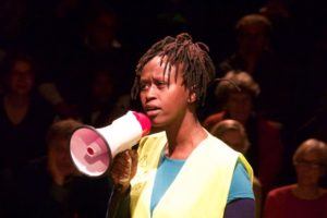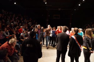 Près de 700 spectateurs ont assisté les 10 et 11 mai derniers à La Parole errante de Montreuil (93) aux deux représentations de « Dégage ! », spectacle issu de notre grand chantier 2018-2019 sur le thème du logement. Retour en photos sur ces deux grands moments de théâtre-forum.